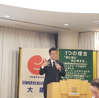4月例会に参加しました。講師は北大阪経営研究会会長の宮田哲治氏でした。宮田さんは、株式会社宮田運輸の5代目社長です。